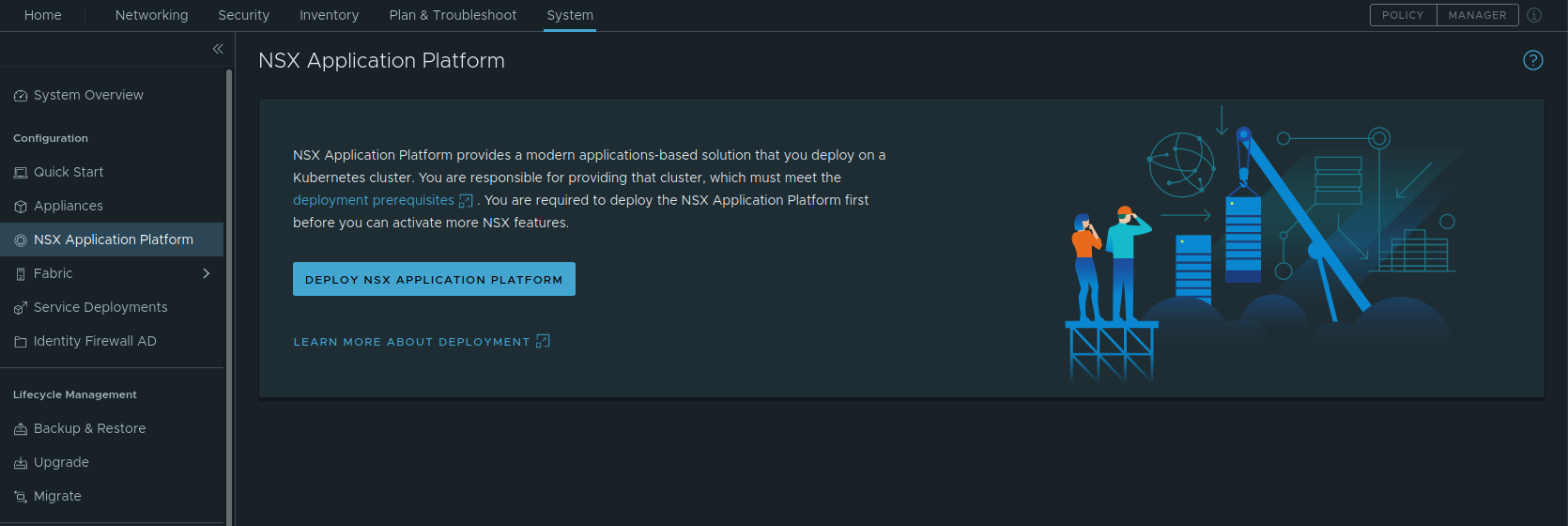 To start, we login to our NSX-T Manager instance, and go to System -> NSX Application Platform. Here you will find the NSX Application Platform launch page, where a brief explanation regarding NAPP is provided. Click the ‘Deploy NSX Application Platform’ button to get started deploying NAPP.