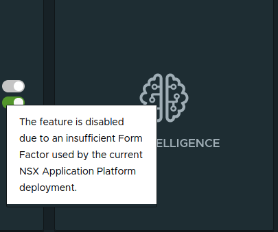 So the Form Factor we’ve used in our lab (due to hardware limitations) can’t support NSX Intelligence, as you can see on the left. However, once we apply an Advanced Threat Prevention Add-on license, you can see how the list of features changes: