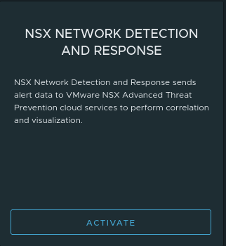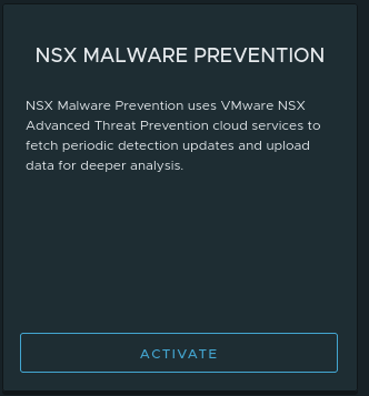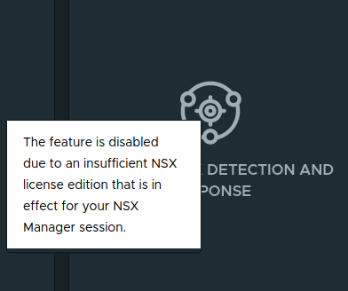 Now we can see ‘NSX Network Detection and Response‘ and ‘NSX Malware Prevention‘ are in blue, which indicates that these features may be activated. By moving your mouse pointer over one these features now, you’ll see the below: