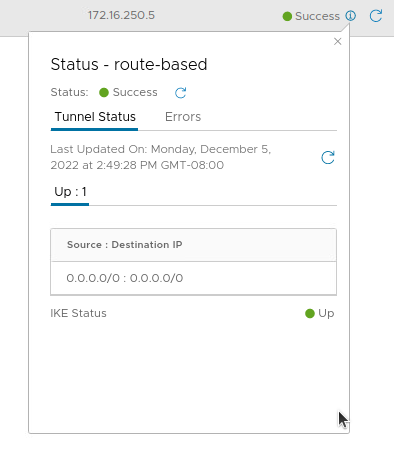 However, if we click the small “i” symbol beside ‘Success‘ to gather additional data about the tunnel status, we find something that may look unusual to you: